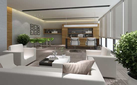 在裝飾辦公室時,我們首先應該對地面進行裝修,不平整的地方要用砂漿找平,或者用水泥自流平也可以。地面找平后,您可以選擇鋪貼瓷磚或者木板?,F在也有不少老板在平整的地面上鋪上地毯,效果也是不錯的,而且更加的靜音。