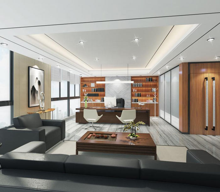 董事長辦公室設計:董事長是企業的核心,此處也是企業的核心所在,辦公、接待、洽談、交流、展示組成一個完成的董事長辦公室。
