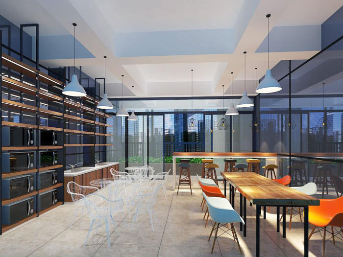 辦公室茶水間設計:員工在這里休息、娛樂,這里采用的是工業風的設計,目的就是希望員工在這里沒有任何壓力,讓員工在這里得到暫時的安寧。
