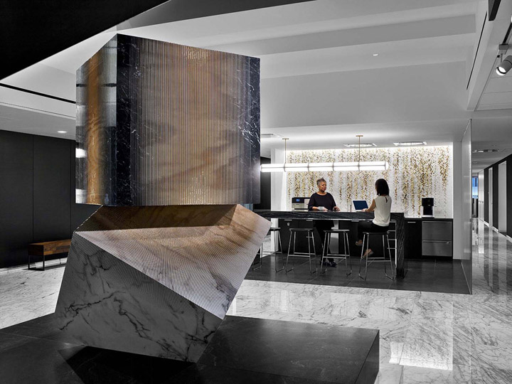 客戶將之前辦公室收藏的藝術品也展示于新的工作場所中。他們還拍賣了一些珍貴的藝術品,從紐約當地藝術家那里購買當代繪畫和雕塑,極簡而凝練的現代空間在這些藝術品的映襯下更具時尚文化魅力。