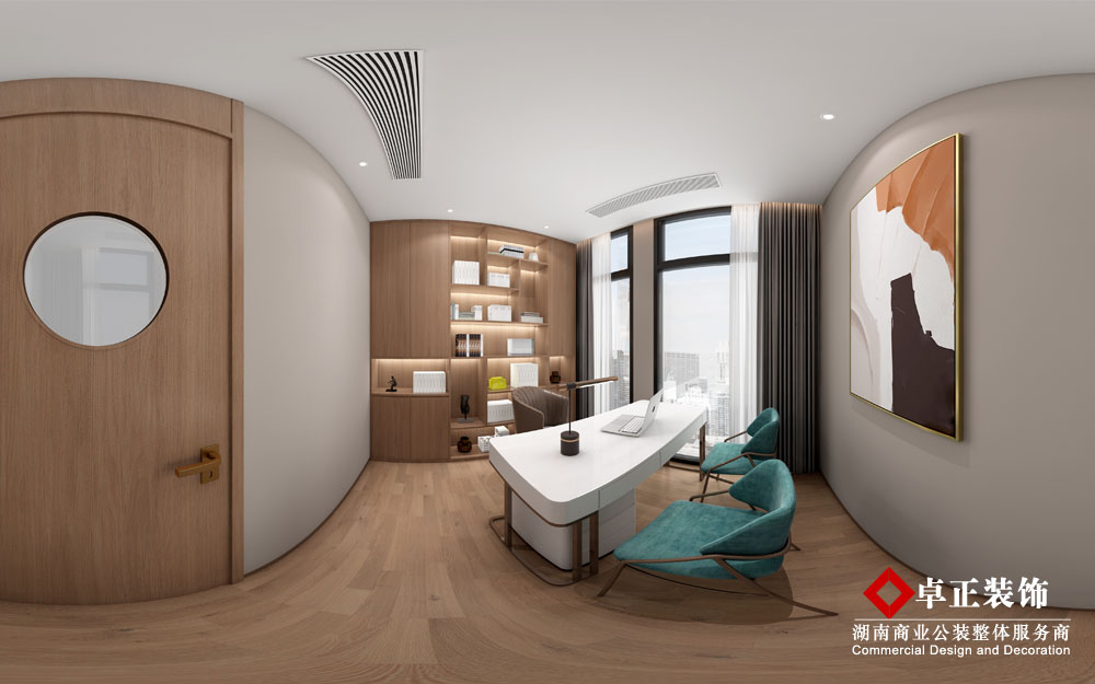 現代簡單的辦公室裝,一般采用幾何線條裝飾,在色彩方面受到現代繪畫思想的很大影響?,F代簡約辦公室的色彩一般比較清晰,多采用淺色裝飾,色彩跳躍輕快,在色彩上結合公司的實際需求,增加室內色彩。